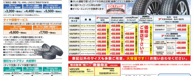 タイヤ買うなら一度ご相談下さい!!店頭にて値引き商談OK タイヤ・ホイール・カー用品販売、交換、取り付け、メンテナンス等、お客様のニーズに幅広く、迅速、丁寧、親切に対応させて頂きます。 他店で購入されたタイヤの持ち込み組替、ホイールバランス調整、交換作業致します。 ご来店、…